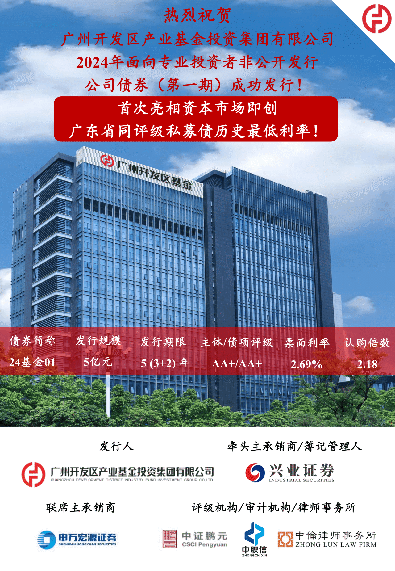 4月11日,广州开发区产业基金投资集团(简称:基金集团)成功于深圳证券交易所发行首支私募公司债券,实现基金集团在公开市场的首次亮相。