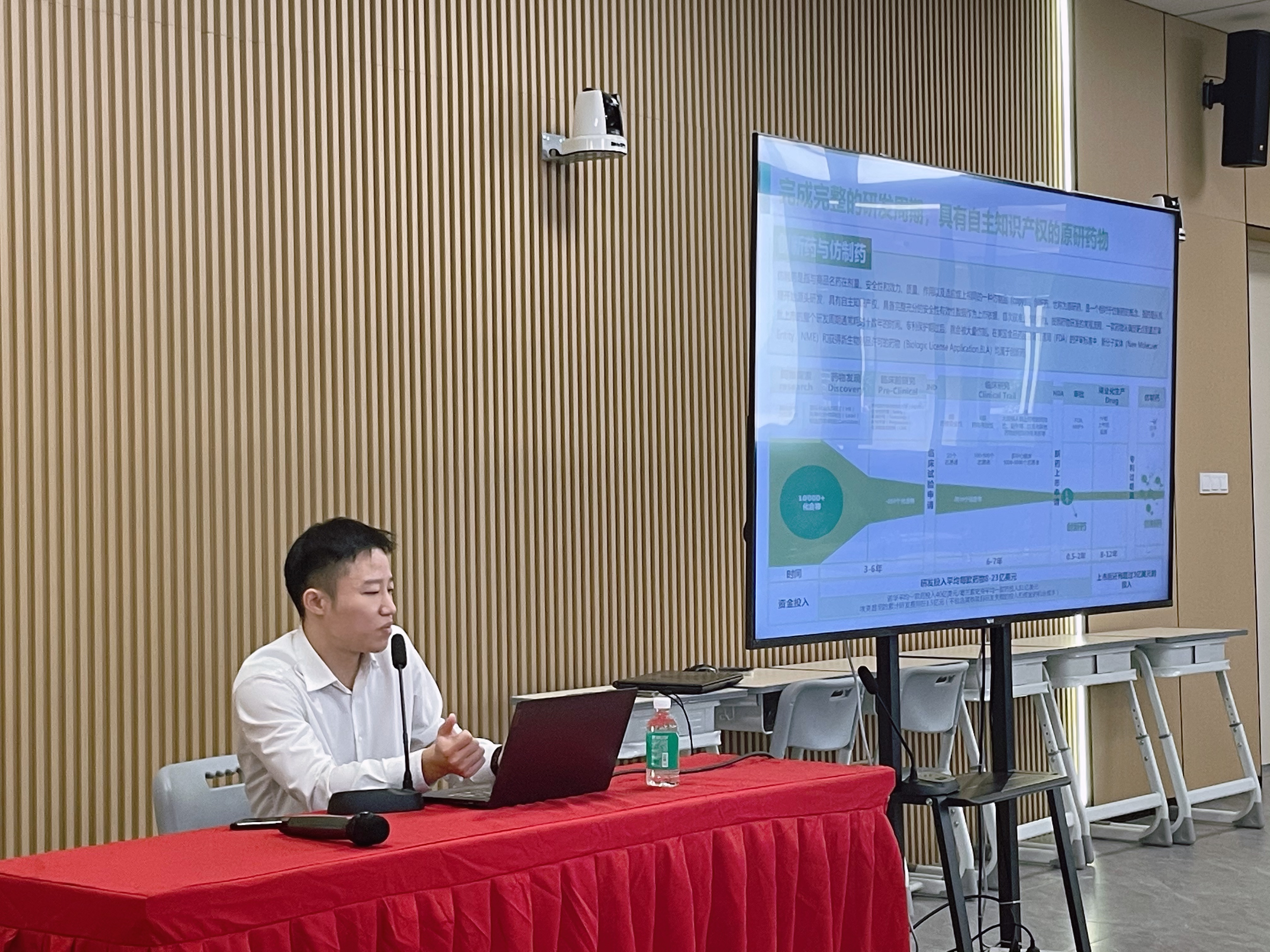 本次活动邀请了开发区基金集团下属广州开发区新星股权投资基金管理有限公司副总经理胡成博士做创新药产业科普主题分享,胡成博士利用深厚的药学专业知识,围绕药物分类、药物研发、国内创新药发展历程、国外发展经验等重要维度,向百名苏元学生讲授基础要点,并结合生动的视频、个人求学履历等激起同学们对医药行业的兴趣,启发思维,获得在座师生的一致好评。