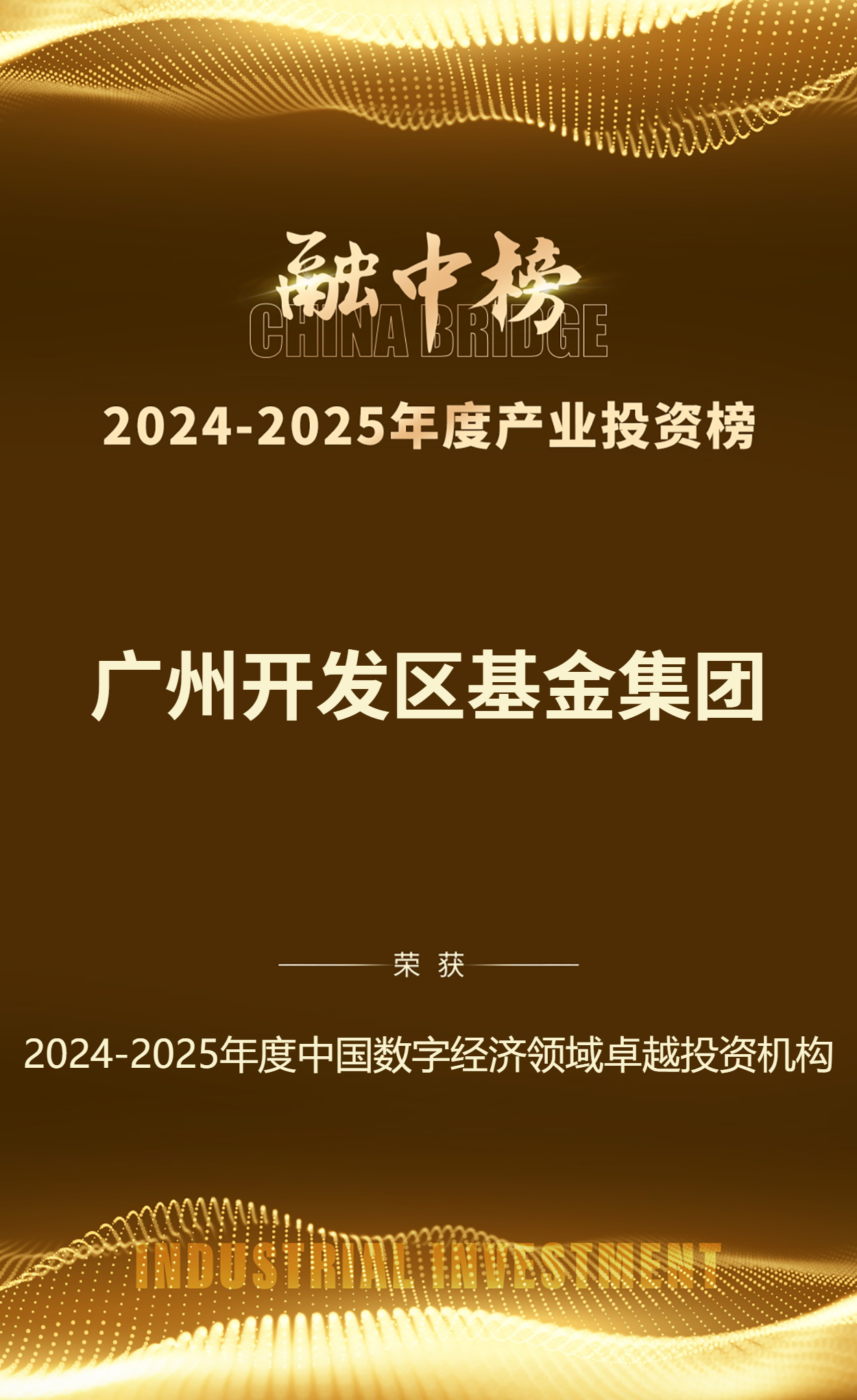 2025年7月24日,融中2024-2025年度中国产业投资榜单盛大发布,广州开发区产业基金投资集团有限公司(简称“开发区基金集团”)凭借卓越的私募股权投资能力和国有资本支持产业发展的影响力,荣获“2024-2025年度中国数字经济领域卓越投资机构”和“2024-2025年度中国生物医药领域最佳投资机构”两大奖项。