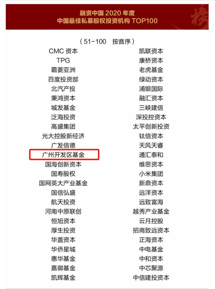 2021年1月13日-14日,融资中国2021(第十届)资本年会暨颁奖盛典在上海隆重召开,发布2020年度股权投资领域九大综合榜单。开发区基金荣登2020年度“中国最佳私募股权投资机构TOP100”榜单,成立短短三年时间,跻身优质私募股权投资机构行列。