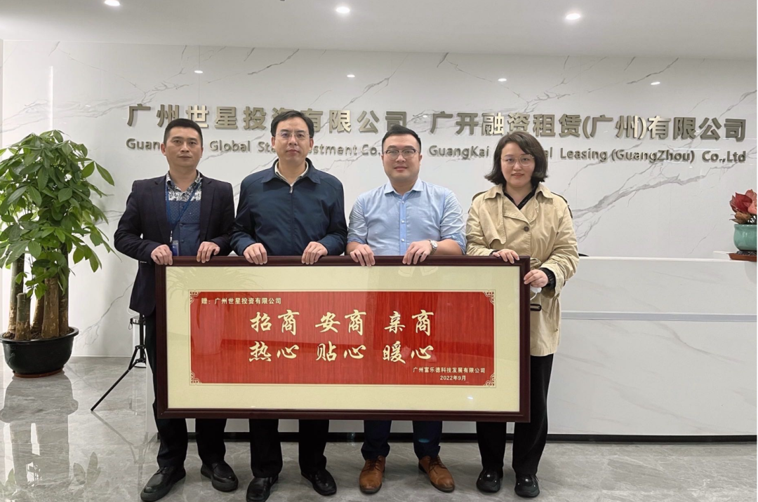 近日,广州富乐德科技发展有限公司(以下简称“广州富乐德”)向广州世星投资有限公司(以下简称“世星公司”)赠送题为“招商、安商、亲商、热心、贴心、暖心”的牌匾,对世星公司以全方位优质服务促成广州富乐德“早拿地、早建设、早竣工、早投产”表示衷心的感谢。