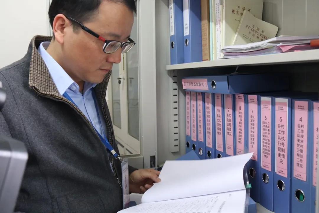 李课书翻阅扶贫工作台账资料