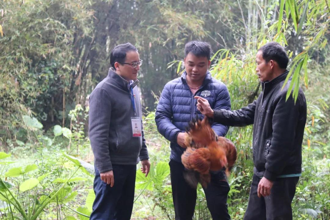 李课书和丘永钊来到高进神的鸡只养殖大棚,了解当前鸡只的防疫等相关情况。对于他们的到来,高进神表示热烈欢迎。他说,在各方帮扶下,去年年底,他已售出了第一批鸡和鸭。加上务工收入以及种植玉米,去年收入达到了4到5万元。